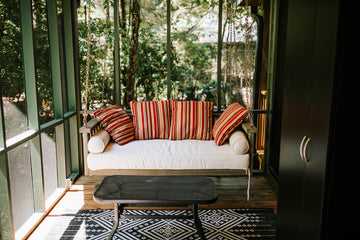 - You can store the porch swing cover in the black storage cabinet on the porch. Please make sure to replace the cover when you check out to protect it from the elements
