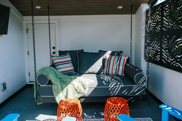 ☀ Rooftop deck with bed swing, tub, firepit & grill