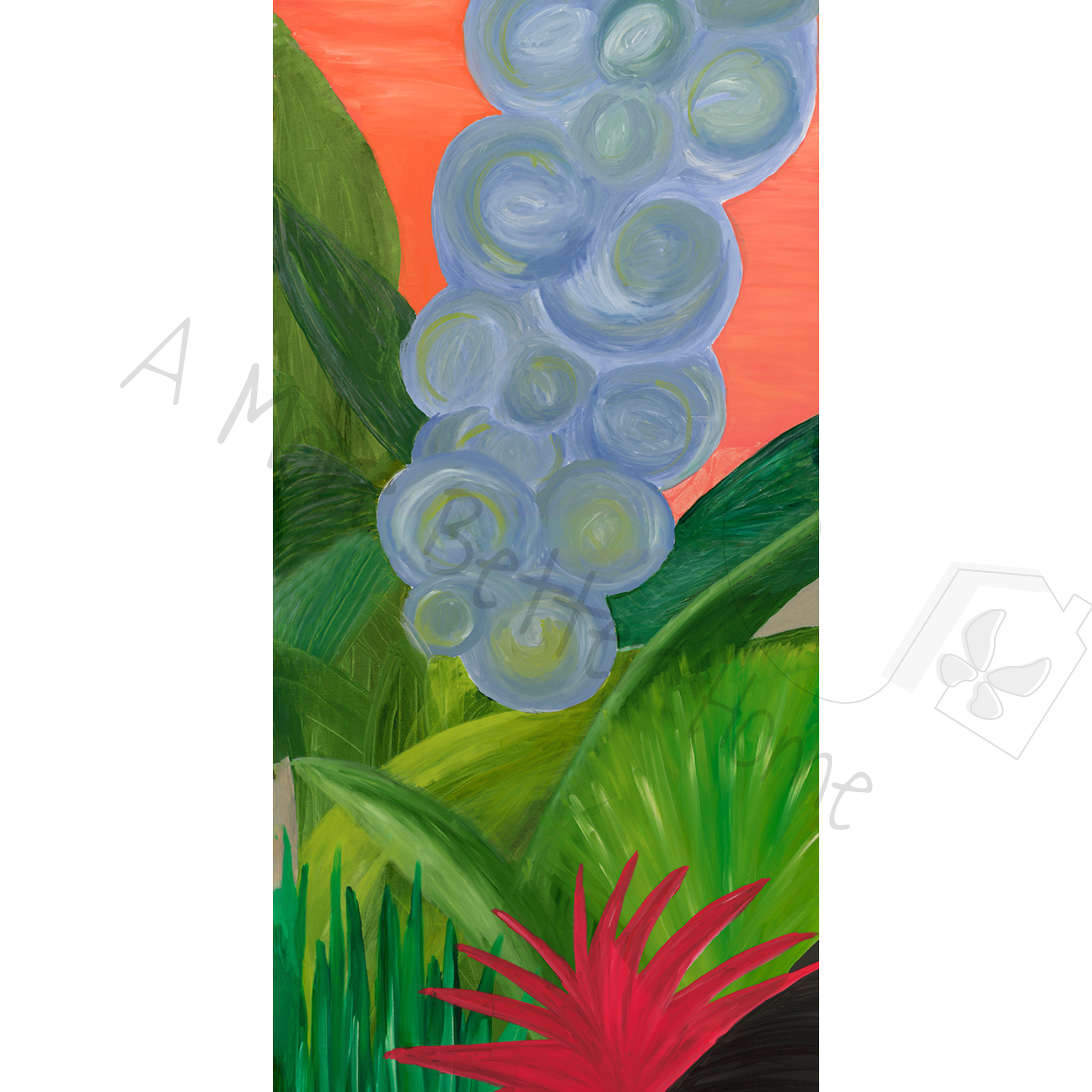 The tall, vertical layout makes this piece a striking focal point for stairwells, entryways, or spaces with high ceilings. Its dynamic composition blends nature-inspired elements with modern abstraction, creating a statement that feels both fresh and timeless.